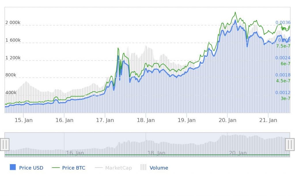 Over scam-geruchten gesproken: hier eentje van een nog groter kaliber: APL. Een fork van NXT zonder de features die ze allemaal voorschotelen, zonder incasseringsvermogen en antwoorden op kritische vragen en een bijzondere founder. Tenminste, als je deze populaire Reddit post bekijkt. Maar ondanks dit alles, is APL met 309% gestegen in de afgelopen week. Niet een enorme spike, maar een geleidelijke groei. Dit heeft alles te maken met de gigantische shills die er op de twitter-accounts van Steve McCullah en AppolloCurrency worden geplaatst. Waar de waarheid ligt is moeilijk in te schatten, maar feit is wel dat er een bijzonder verhaal aan deze munt hangt.