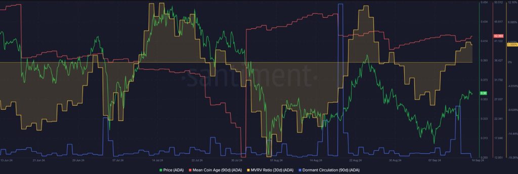 De spike in dormant circulation op 11 september veroorzaakte een kortstondige prijsdaling, maar ADA herstelde toen snel.