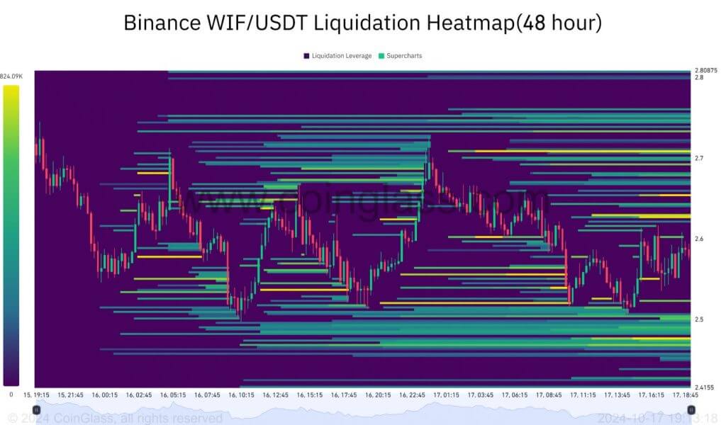Op het moment van schrijven, handelde dogwifhat onder de $2,60, met $675.000 aan openstaande perpetual futures contracten voor liquidaties op dit niveau.