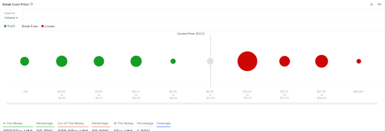 Tegelijkertijd bevindt $690 miljoen aan UNI zich nog in verlies. Wanneer de prijs richting break even niveaus stijgt, kunnen deze holders beginnen bij te kopen, wat de koopdruk verder kan verhogen.