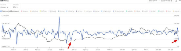 Ondanks de recente zwakte lijken lange termijn holders zich geen zorgen te maken. In de afgelopen week werd $1,80 miljard aan ETH van gecentraliseerde beurzen gehaald, een teken van vertrouwen in zelfbewaring en langetermijnopslag. Historisch gezien gingen dergelijke uitstroomfasen vooraf aan herstelperiodes, zoals gezien werd tijdens de bodem van 2022.
