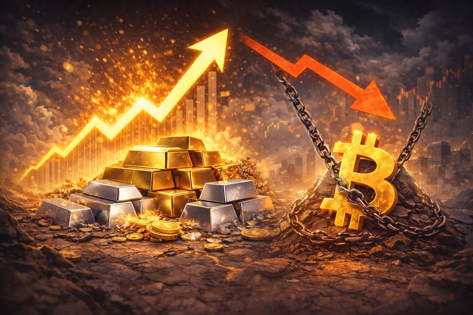 Terwijl goud en zilver nieuwe all time highs neerzetten en de aandelenmarkten bijna op hun pieken staan, blijft Bitcoin opvallend achter. Volgens data van CryptoQuant staat BTC momenteel nog steeds ongeveer 30% onder zijn hoogste koers ooit, terwijl goud en zilver doorstomen op recordniveaus. De reden? Een mix van whale selling, ETF uitstroom en het gebrek aan overtuiging onder risicovolle beleggers.