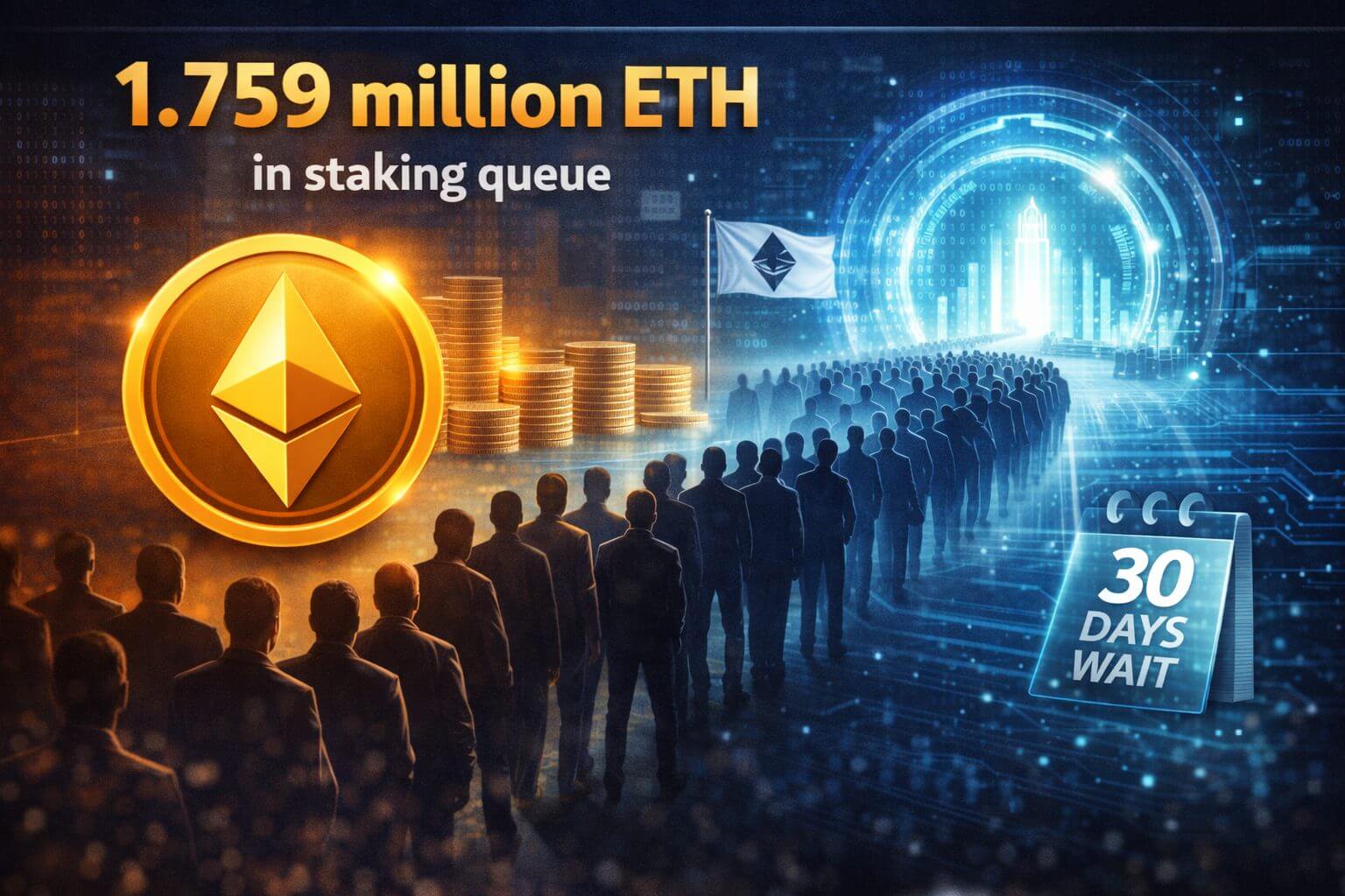 De belangstelling voor het staken van Ethereum is flink toegenomen. Volgens cijfers van ValidatorQueue.com is de wachtrij om nieuwe validators te activeren opgelopen tot maar liefst 1.759 miljoen ETH, omgerekend ongeveer $5,5 miljard. Nieuwe deelnemers moeten nu ruim 30 dagen wachten voordat hun validator daadwerkelijk aan de slag kan.
