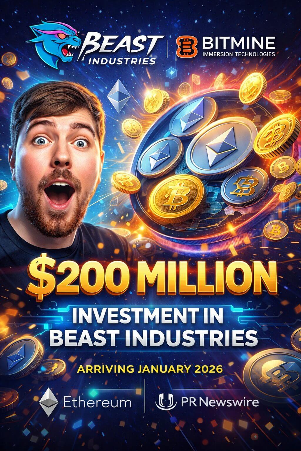 Crypto en content komen samen in een opvallende investering: Bitmine Immersion Technologies (BMNR) pompt maar liefst $200 miljoen in Beast Industries, het snelgroeiende bedrijf van YouTube gigant MrBeast. De deal wordt afgerond rond 19 januari 2026 en markeert een opvallende samenwerking tussen de werelden van digitale assets en online entertainment.