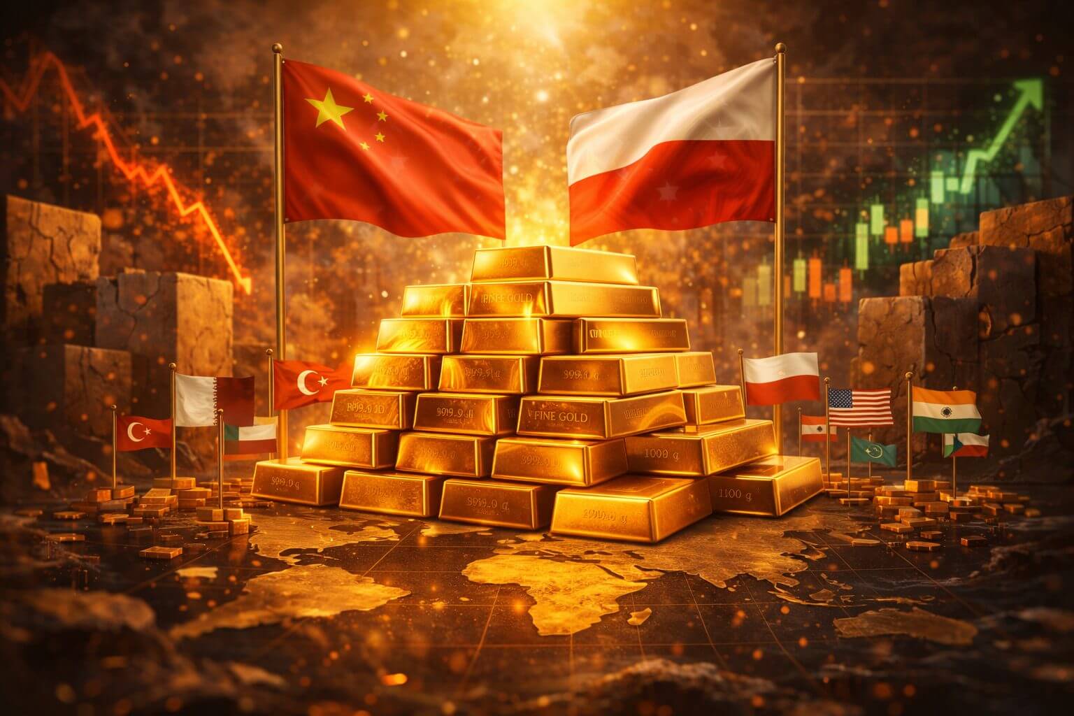 Opvallend is dat sommige landen agressief blijven kopen. Polen springt eruit met een aankoop van 20 ton, waarmee goud nu goed is voor 31% van de totale reserves. Ook China blijft structureel bijkopen en noteert inmiddels 16 maanden op rij met extra goud in de kluizen. In februari komt daar nog eens 1 ton bij.