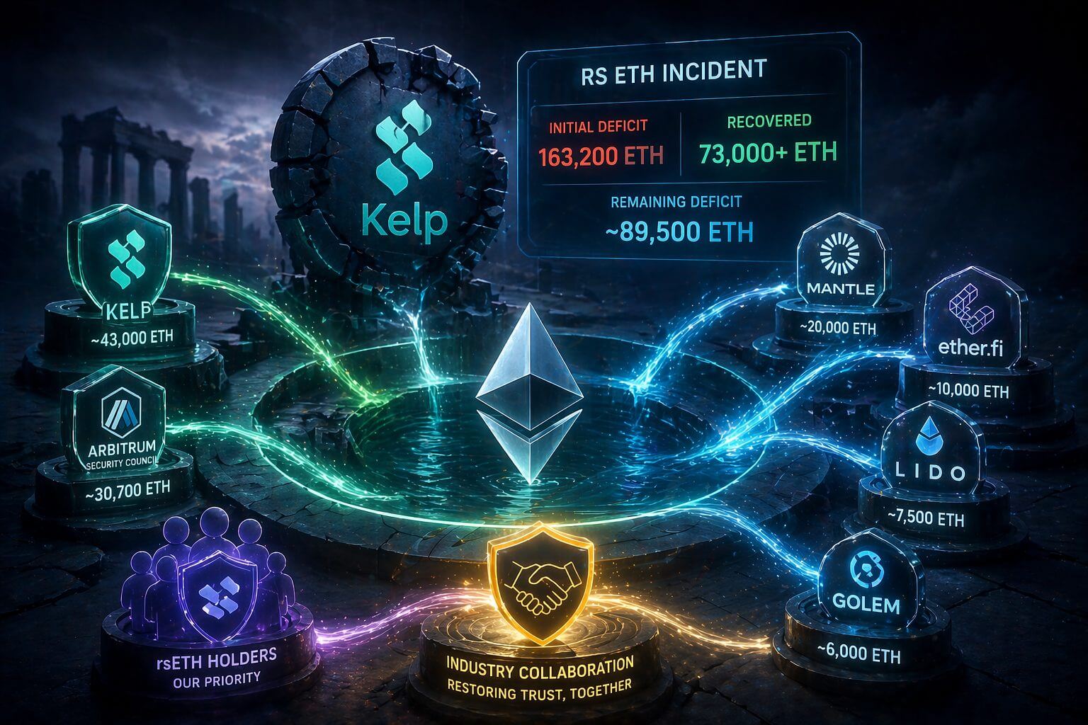 De nasleep van het rsETH incident blijft de DeFi sector bezighouden. Kelp werkt samen met Aave en meerdere grote partijen om de schade te beperken, maar er staat nog altijd een aanzienlijk tekort open. Hoewel een deel van de verloren middelen inmiddels is teruggehaald, draait het nu vooral om samenwerking binnen het ecosysteem om de resterende kloof te dichten.