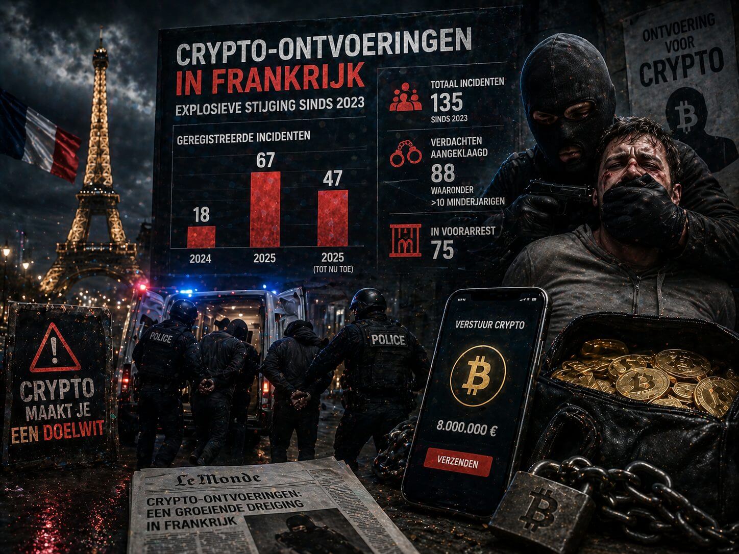 De impact van deze misdrijven is groot. In een recente zaak werd een koppel ontvoerd en mishandeld, waarna zij werden gedwongen om ongeveer €8 miljoen aan crypto over te maken. Zulke incidenten laten zien hoe ver criminelen bereid zijn te gaan. Dit soort gebeurtenissen volgen op bredere ontwikkelingen waarin overheden ingrijpen bij grote crypto bedragen.