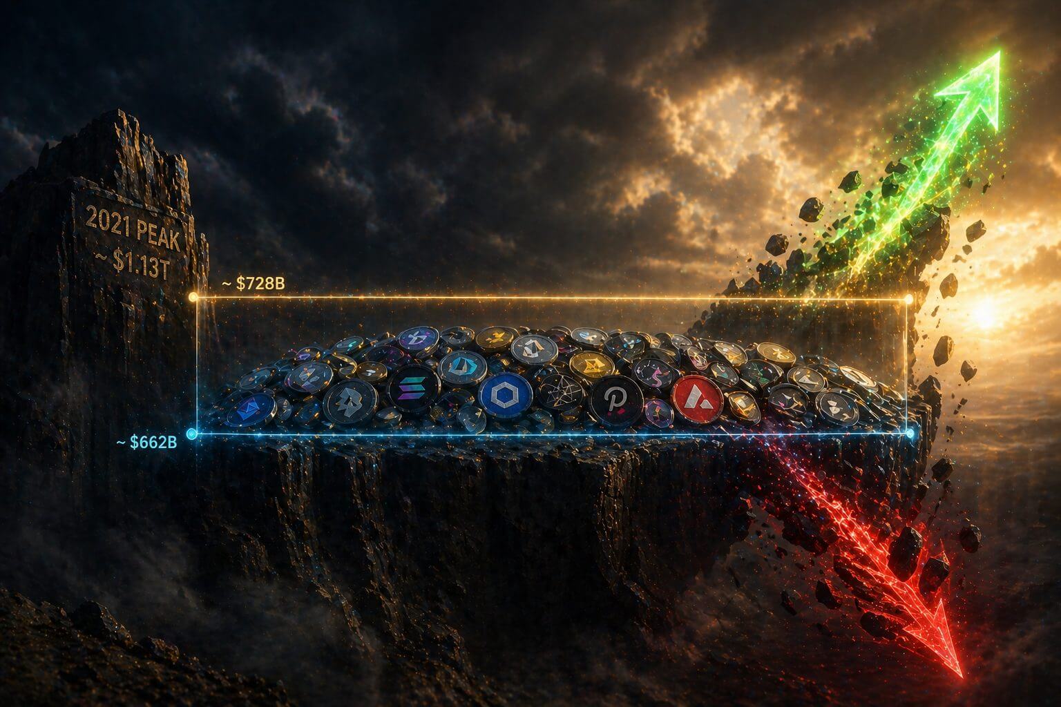 Volgens analist Daan Crypto Trades beweegt de totale altcoin market cap momenteel binnen een bandbreedte van ongeveer 10%. Dat is relatief smal voor de cryptomarkt, waar volatiliteit normaal gesproken juist hoog ligt. Op de grafiek is te zien dat de market cap rond de $728 miljard schommelt, met duidelijke support in de buurt van $662 miljard.